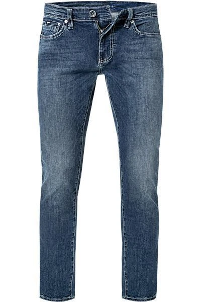 Diese kernige Jeans erweist sich als maskuliner Begleiter, authentischer Denim Looks. Das Modell präsentiert sich in einer körpernahen Schnittführung, einer coolen Waschung und wird von hellen Steppnähten, markant akzentuiert.